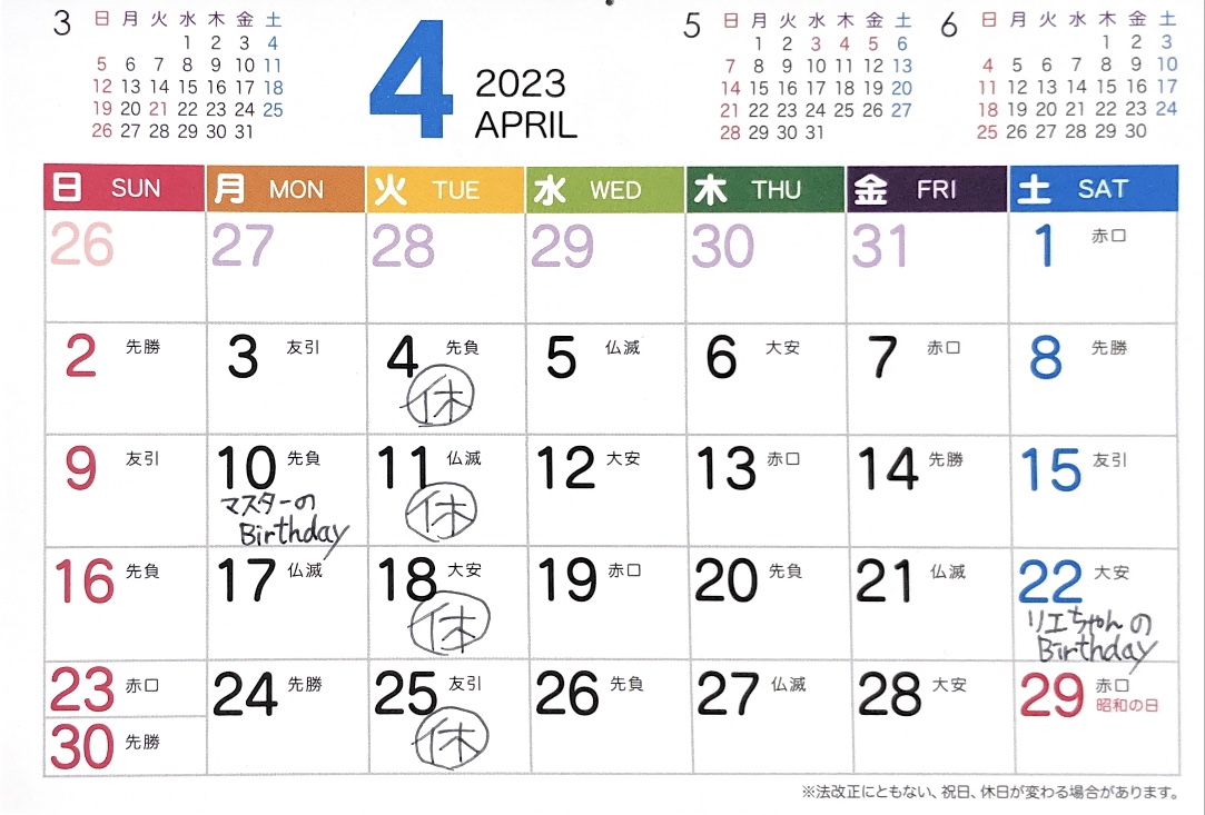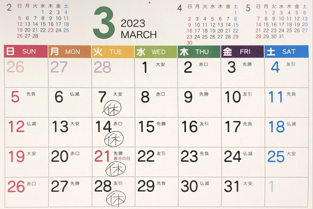 • 3月・4月の定休日