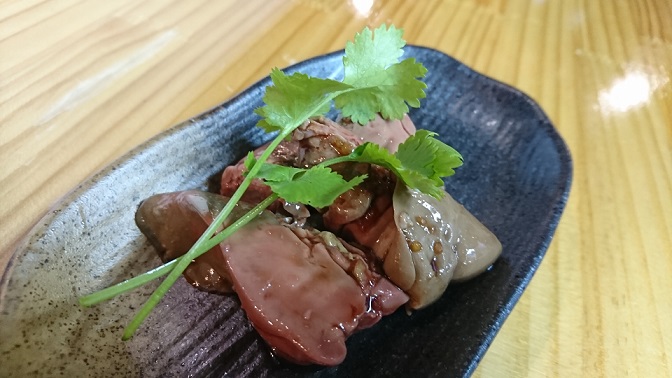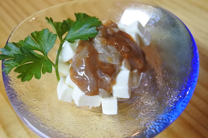 珍しいマグロの酒盗にクリームチーズを合わせた、お酒のアテにはたまらない1品です